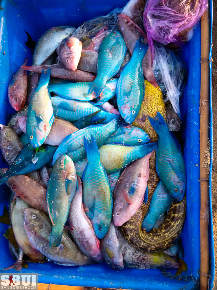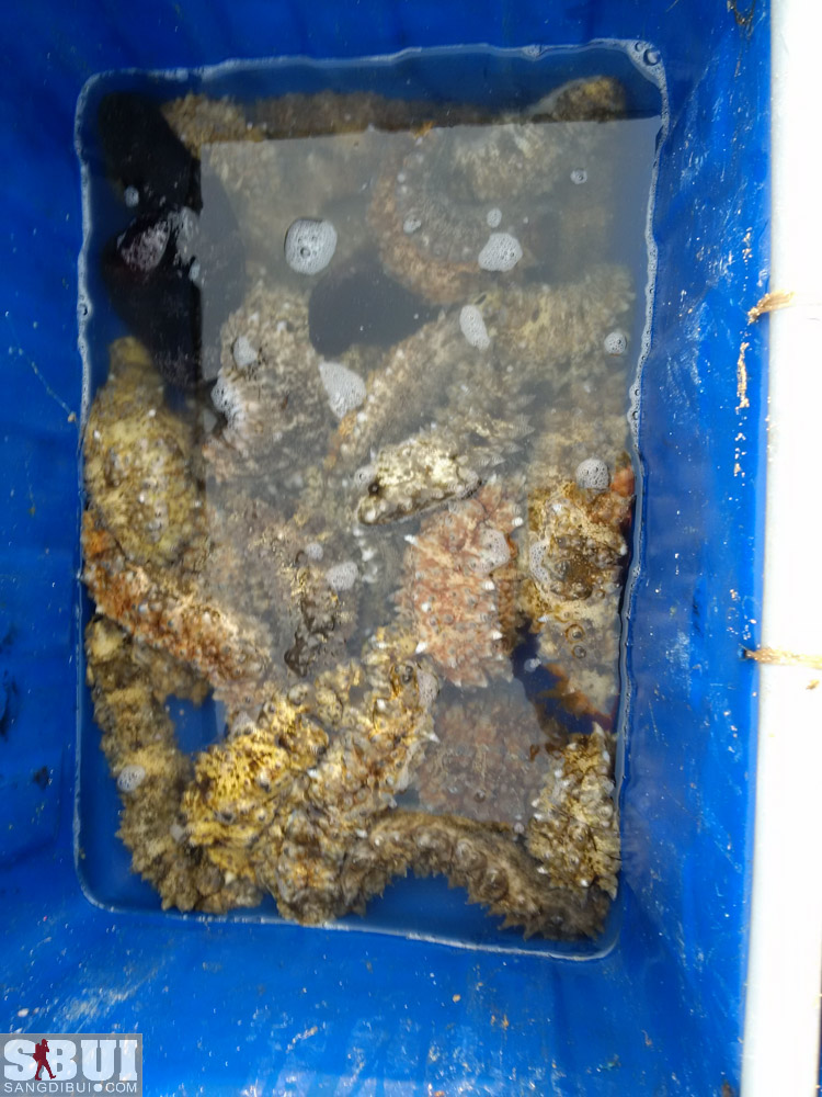 Nhà anh Lĩnh ở gần biển, nên sáng hôm sau tôi dậy sớm, đi bộ một xíu về hướng biển là nơi tập kết hải sản vừa đánh bắt được trong đêm. Lần đầu tiên tôi thấy nhiều loại hải sản đến như vậy, từ cá, mực, rồi tôm cua, và cả đủ loại hải sâm, bào ngư nữa cơ. Đa phần là những loại lần đầu tiên tôi thấy trong đời mình. Bãi biển nhỏ quay mặt về hướng đông nên lúc này có thể thấy mặt trời ở phía chân trời ngoài khơi xa, đang cố đưa mình lên cao hơn. Biển lặng và những chiếc thuyền đánh cá to nhỏ nằm im lìm. Chỉ có trên bờ là ồn ào và tấp nập, người buôn kẻ bán, người hối hả bưng những thùng hải sản từ trên thuyền vào bờ, người thì lẹ làng cấp đông cho những lô mực.